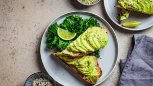 早餐可將酪梨泥抹於全麥吐司上,搭配水煮蛋,提供優質脂肪與蛋白質。
